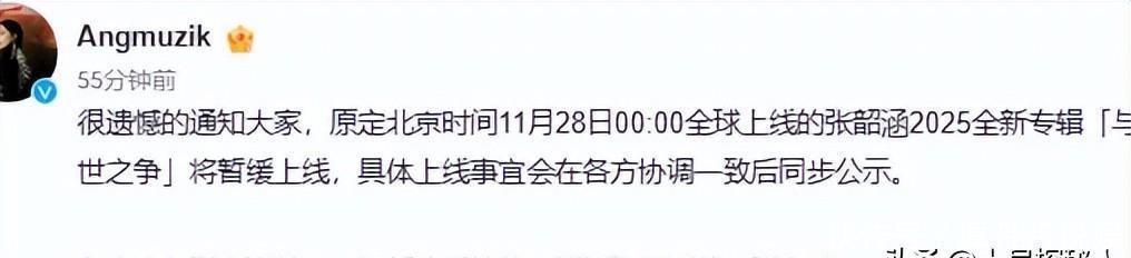 随着杨幂的取消,内地有不少明星也纷纷取消了当天原定的官宣消息。张韶涵暂缓原定全球上线的新专辑、檀健次新歌暂缓、田曦薇新剧宣传推迟。