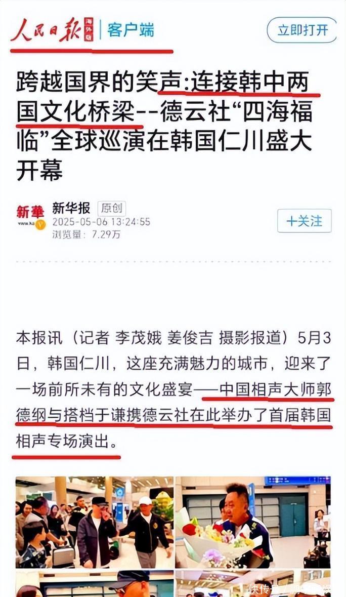 结果却非常尴尬,表扬郭德纲的“新华报”实际上只是一家韩国小媒体,文章发表在了人民日报海外版APP上,结果却被众多德云系自媒体当成人民日报宣传,闹了个大乌龙,也让德云社跟着丢人现眼。